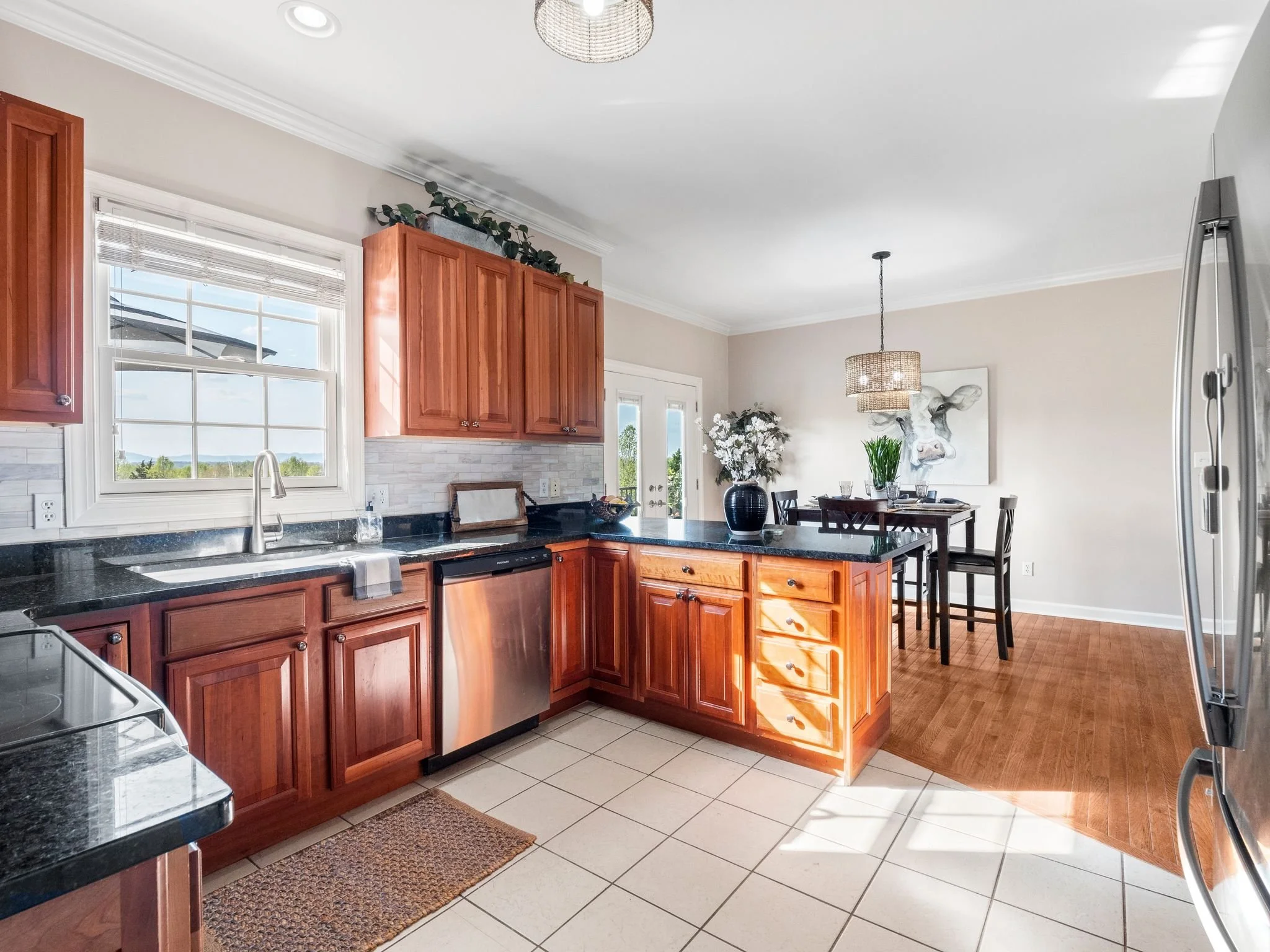 Situated on a spacious 1.3-acre lot, this beautifully maintained property offers 2,500 sq. ft. of finished living space that blends comfort, elegance, and modern upgrades. Step inside to discover an open-concept main level featuring soaring cathedral ceilings and hardwood floors throughout. The kitchen features custom cabinetry, granite countertops, stainless steel appliances (including a double oven with air fryer), a stylish new backsplash, and generous storage space. The kitchen flows effortlessly into the dining and living areas, perfect for entertaining or relaxing with family. The primary suite offers a peaceful retreat with a walk-in closet and a spa-like en-suite bath featuring a jetted whirlpool tub -your own private escape. Two additional bedrooms and bathrooms provide plenty of space for family or guests. The finished lower level adds valuable flexibility with a large recreational room or office space, plus a one-car garage for extra storage or a workshop. Recent upgrades include, new interior and exterior paint (including garages), new Trex rear deck and freshly painted front porch, updated fixtures throughout, new propane tank, updated landscaping, new concrete walkway, new backsplash, and more! Enjoy morning coffee on the large covered front porch or unwind on the deck while soaking in panoramic mountain views. The fully fenced backyard is perfect for kids, pets, and outdoor fun. Ceiling fans in every bedroom ensure year-round comfort, while crown molding throughout adds a touch of sophistication. With a two-car garage on the main level and an additional garage on the lower level, this home offers ample space for vehicles, tools, and storage. This home truly has it all- luxury, comfort, and charm in one of the area's most sought-after neighborhoods. Don't miss your chance to make this Riverfield gem your forever home. Schedule your private showing today!